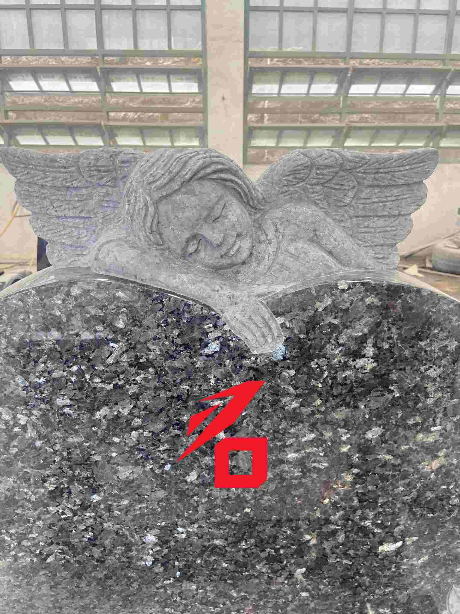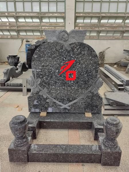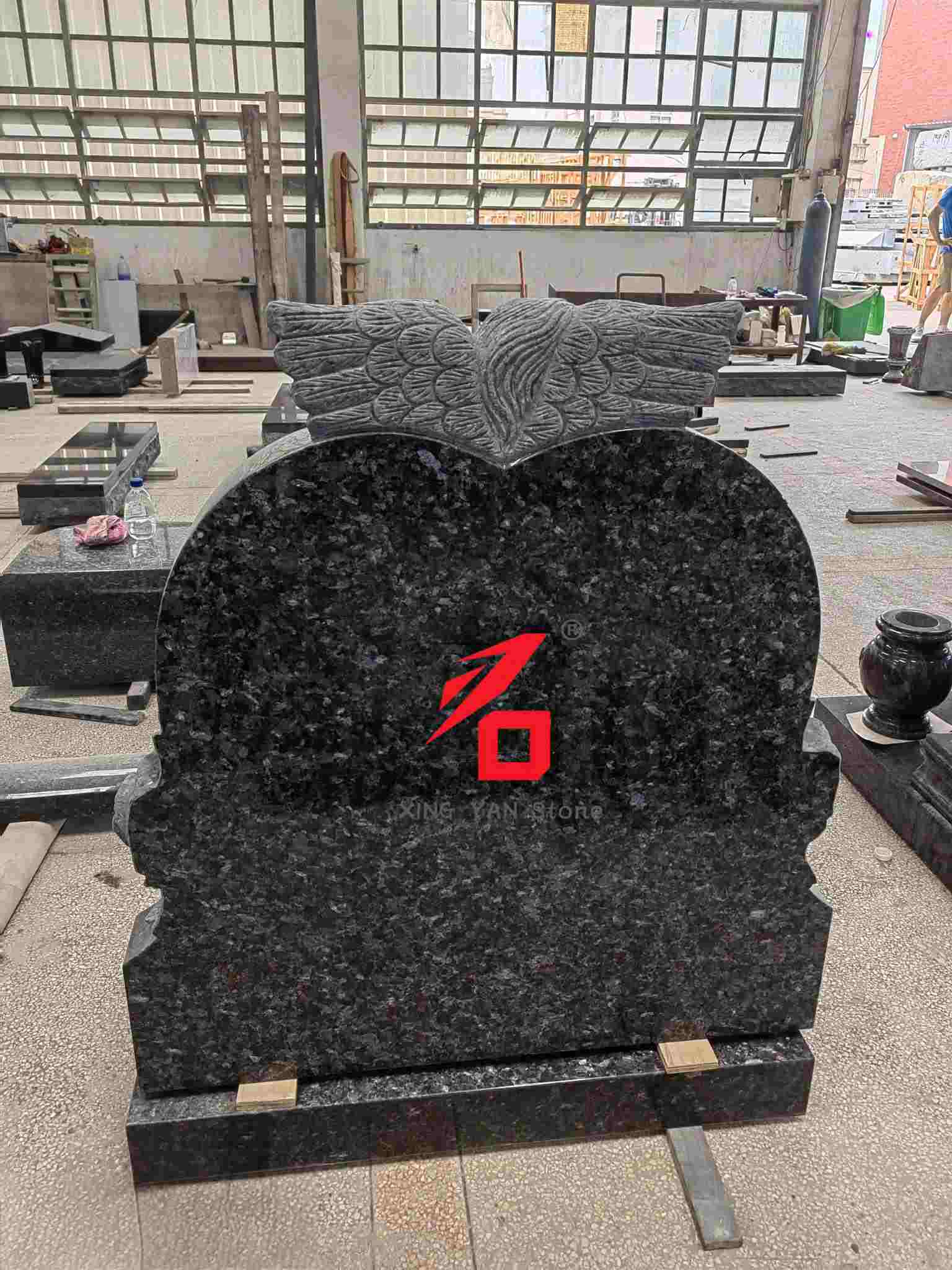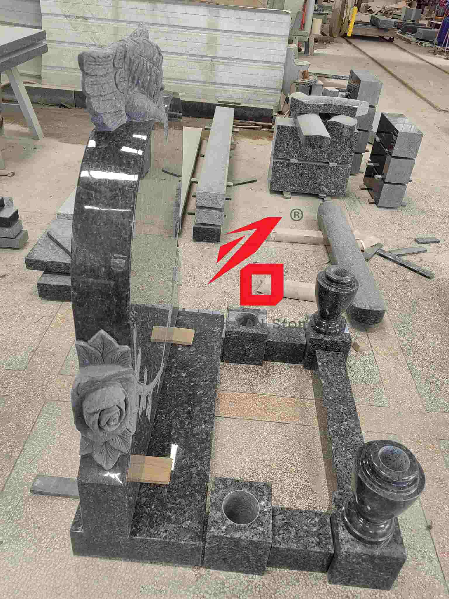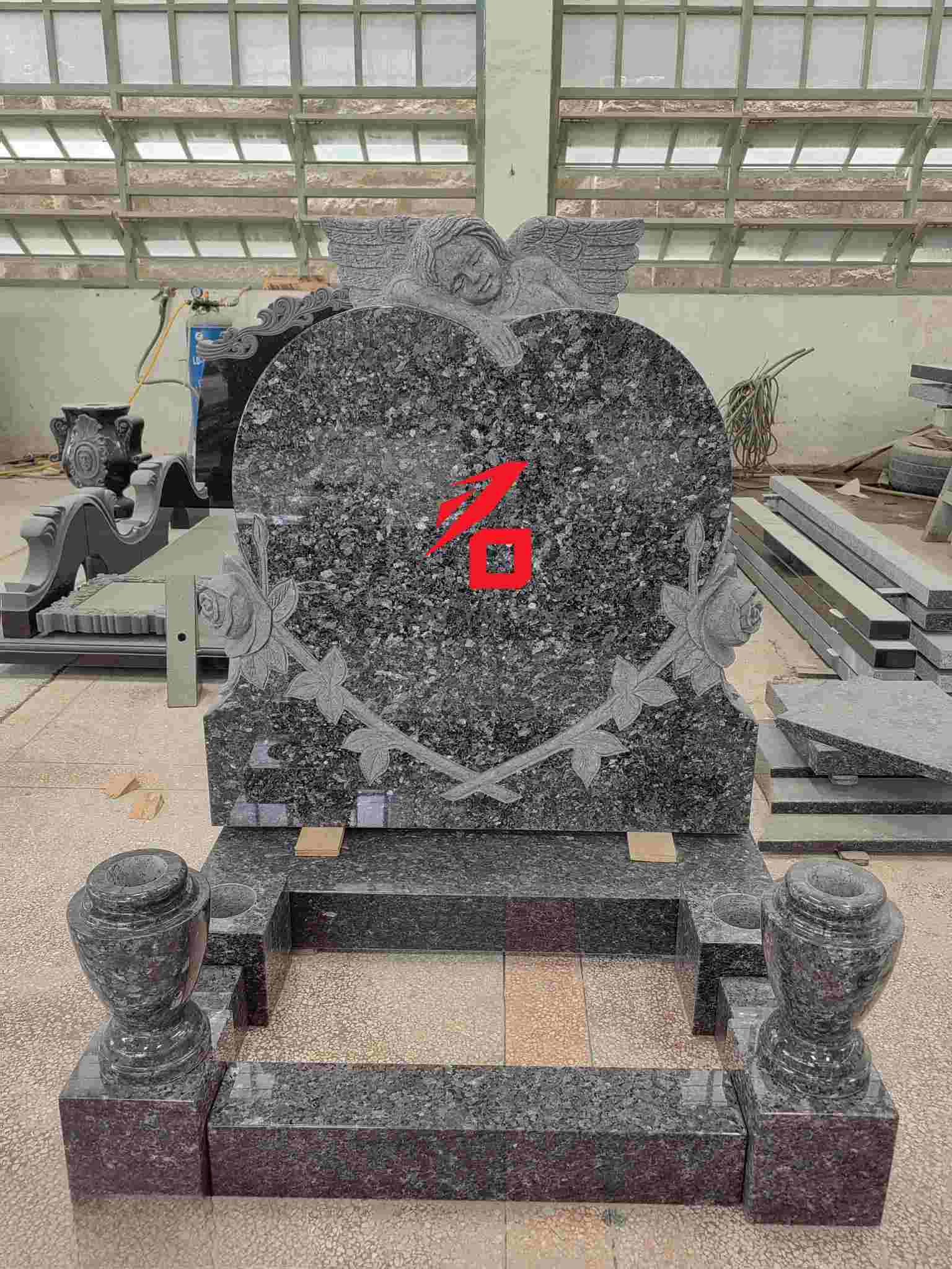 Material: modri biserni granit visoke gostote, trden in odporen na vremenske vplive, s temno podlago, ki izžareva slovesen in dostojanstven občutek;