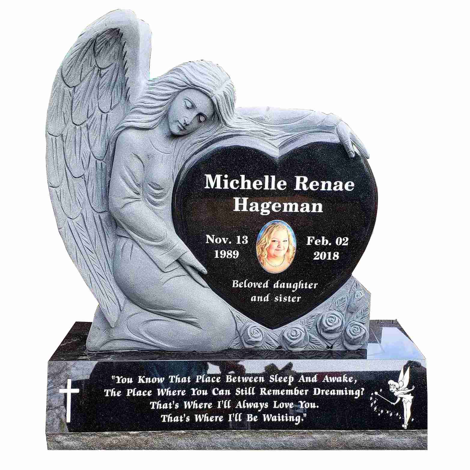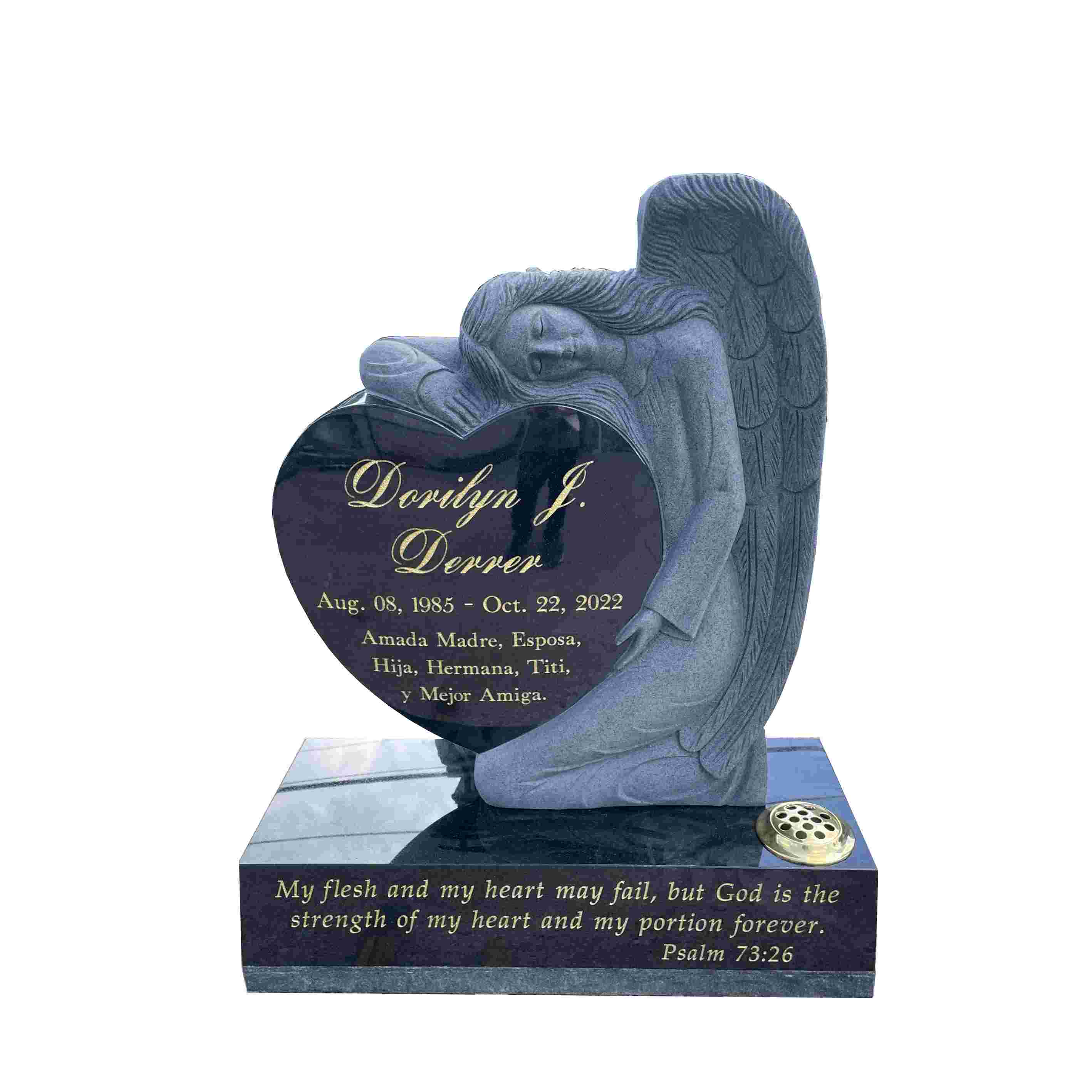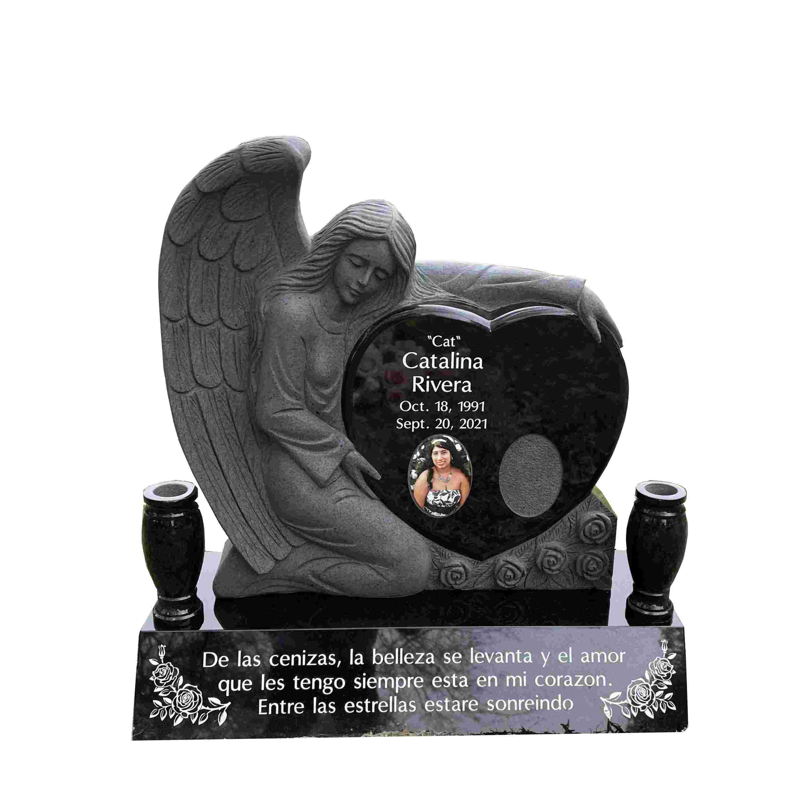 Skratka, naša roka izrezljana črna granitna angelska nagrobnica je čudovit, trpežen in smiseln način za spomin na vaše ljubljene. Zaradi osupljivega dizajna in izjemne izdelave je resnično edinstven in brezčasen spominek, ki ga boste vi in vaša družina neguvali še leta.
