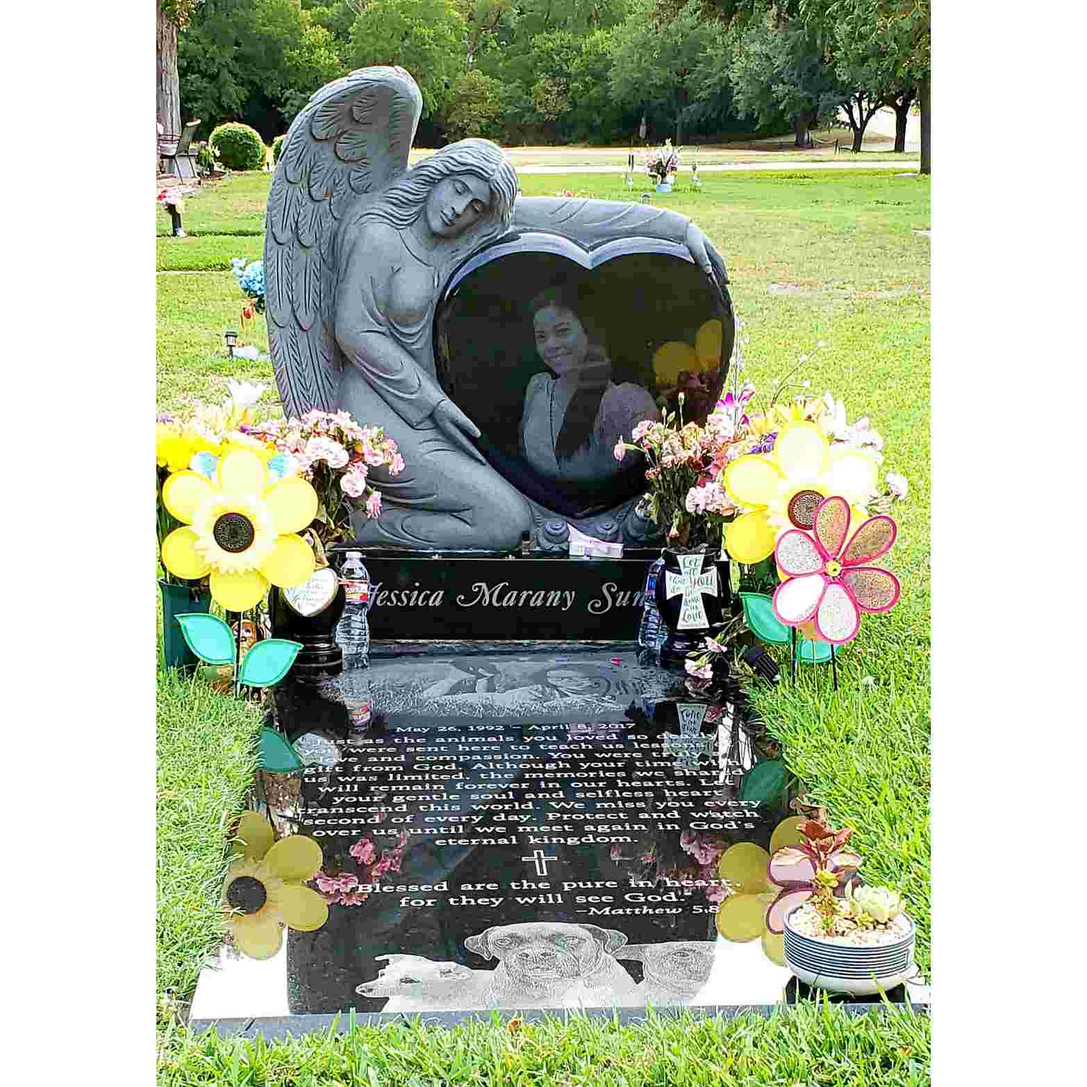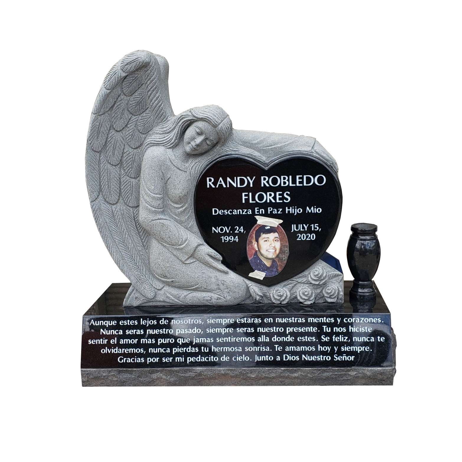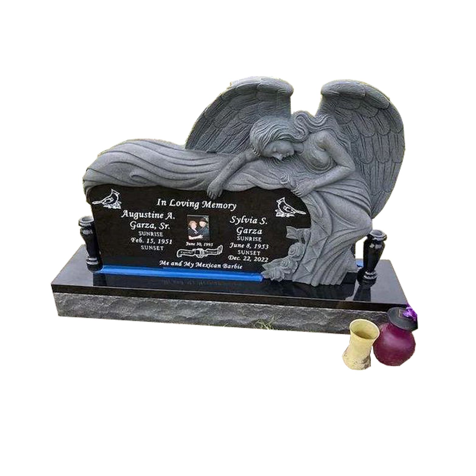 Skratka, naša roka izrezljana črna granitna angelska nagrobnica je čudovit, trpežen in smiseln način za spomin na vaše ljubljene. Zaradi osupljivega dizajna in izjemne izdelave je resnično edinstven in brezčasen spominek, ki ga boste vi in vaša družina neguvali še leta.
