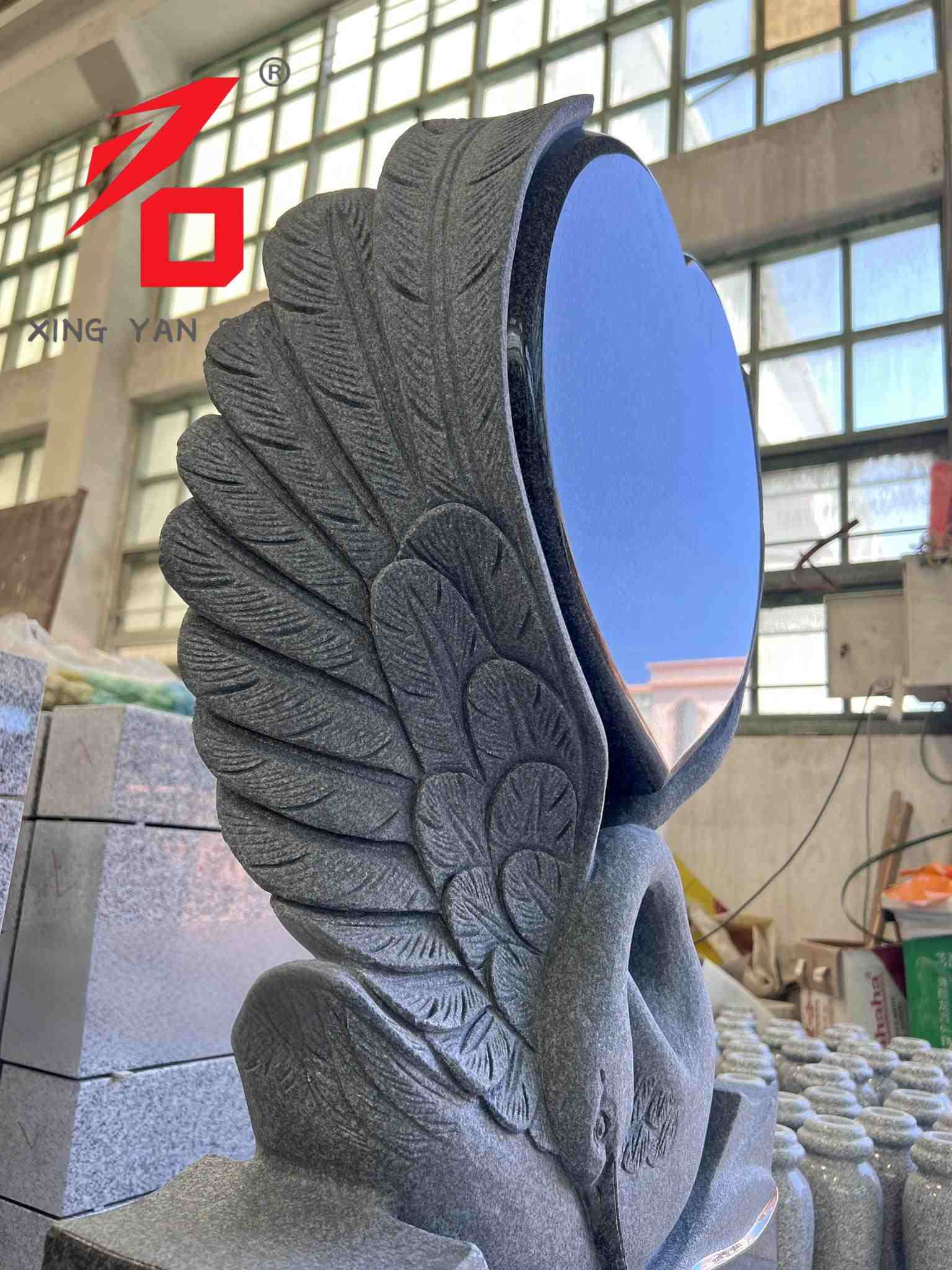 Dizajn: Glavni del je polirano črno srce, za njim pa so izrezljana resnična labodja krila. Oblika laboda in srce simbolizirata večno ljubezen in spomin na pokojnika. Celoten dizajn je visoko umetniški, kar ga razlikuje od monotonega sloga tradicionalnih nagrobnikov.