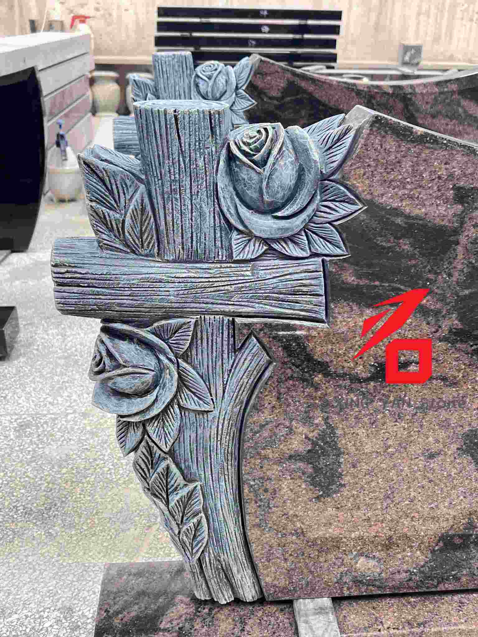 Izdelava: uporablja tehniko 3D reliefa, pri čemer ima križ teksturo lesnega zrna, vzorci vrtnic in listov pa so natančno prikazani. Dekoracija in glavni kamnoseški del sta brezhibno povezana, kar zagotavlja strukturno stabilnost.