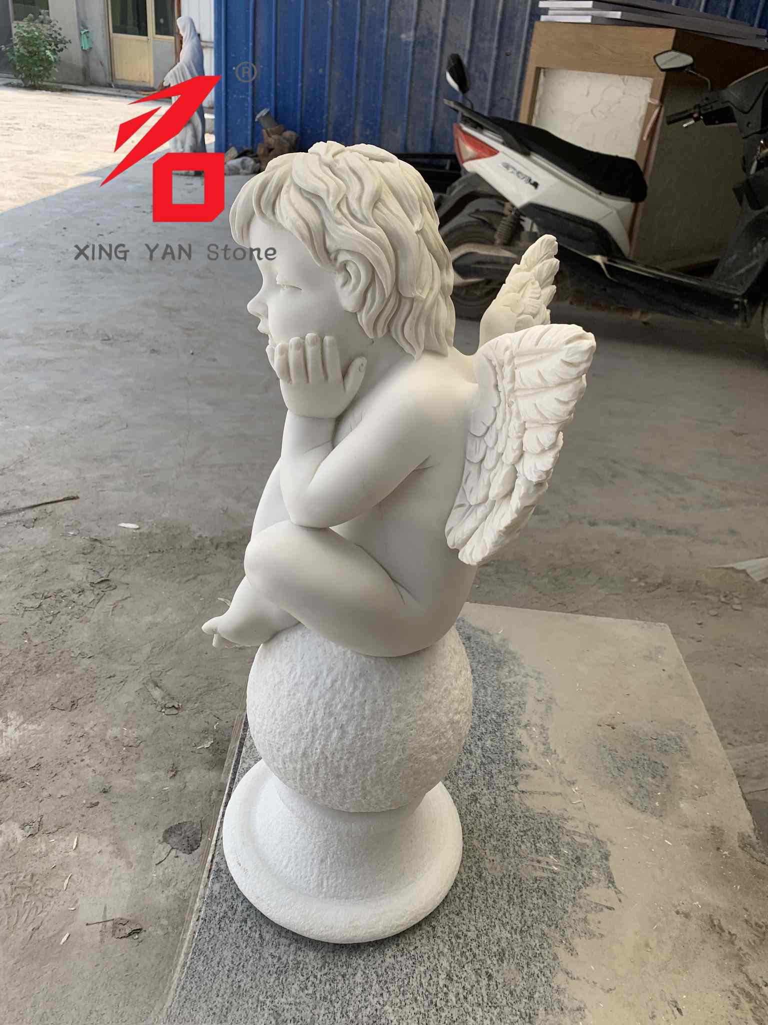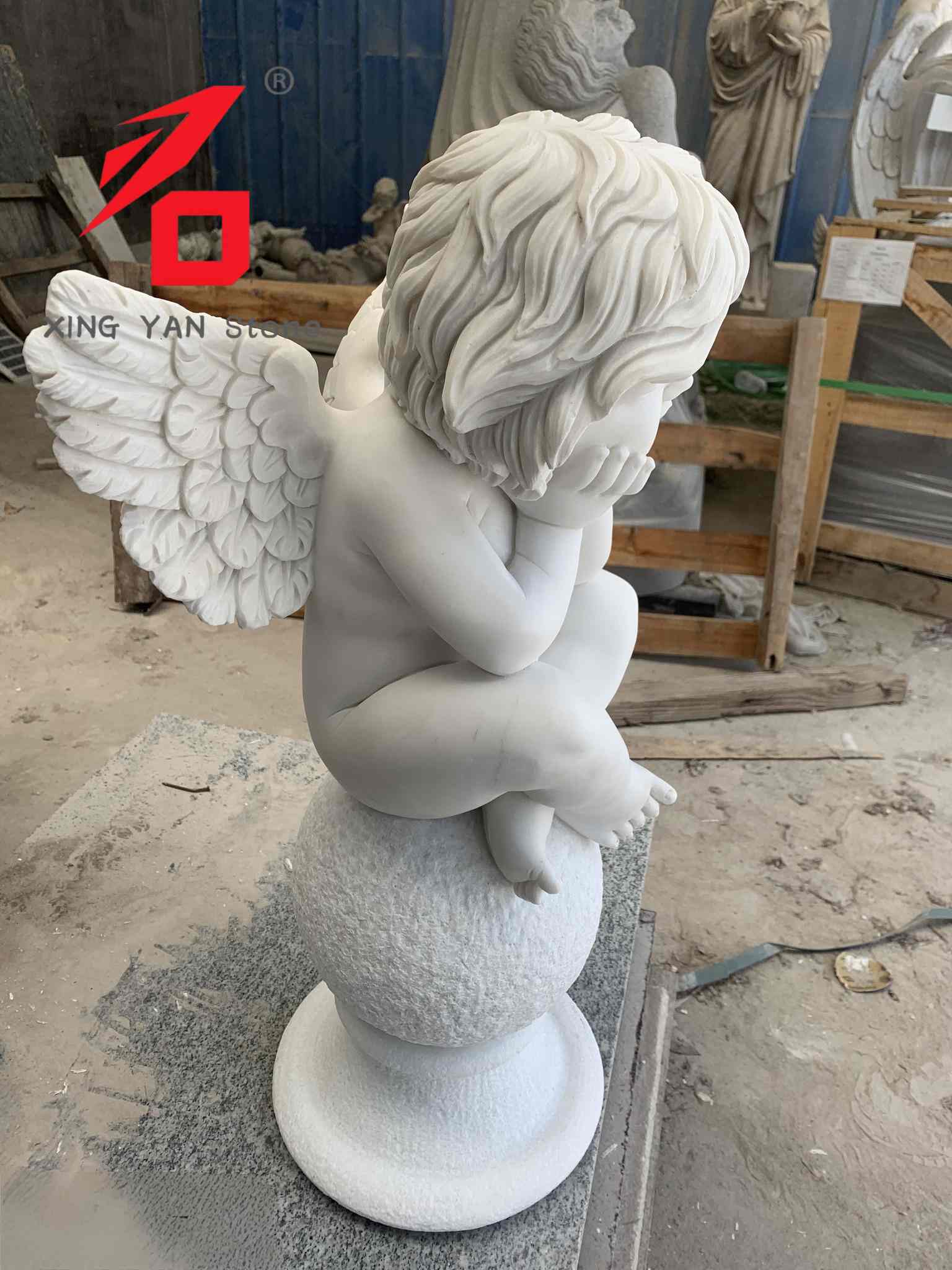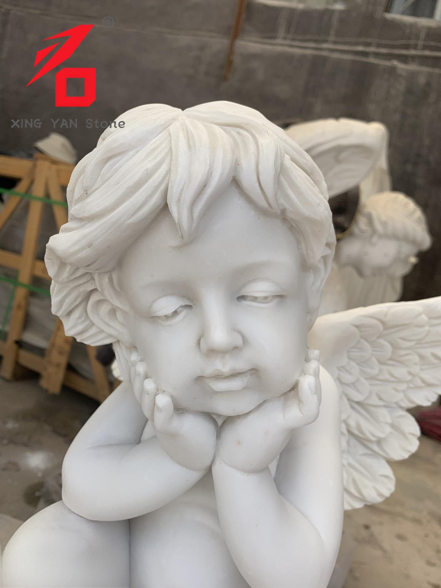 Slog oblikovanja: kerubin je v evropskem klasičnem slogu upodobljen v kontemplativni pozi, z rokami, ki podpirajo brado, in z mirnim izrazom. Njegova krila so jasno definirana, tekstura perja pa je izrazita, kar ustvarja splošen romantičen občutek, ki ustreza okrasnim potrebam evropskih vrtov, verskih krajev ali spominskih okolij.